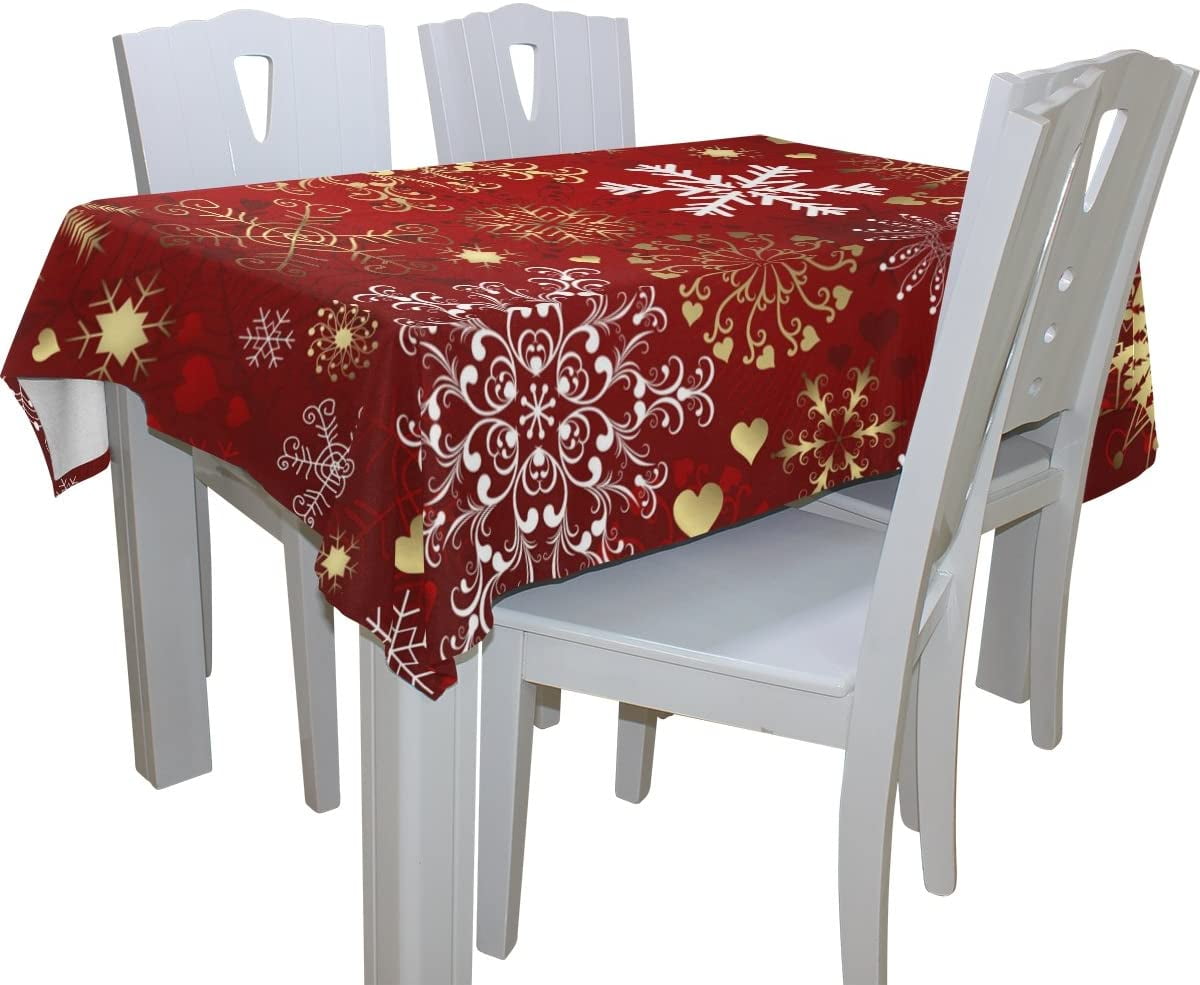 Christmas Holiday Rectangle Tablecloth 54 W X 72 L Christmas Red Gold Snowflakes Modern Table Linen Cloth Cover For Kitchen Dining Room Party Home Decoration Walmart Com