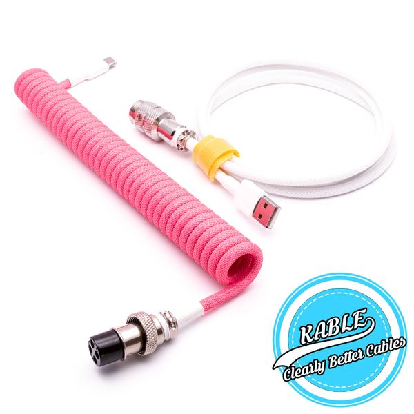 Custom Coiled Type C Cable Split Pink White For Ducky Keyboard Aviator Gx16 Uk